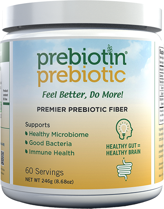 Prebiotin Prebiotic Fiber Supplement supports health and immunity by nourishing beneficial bacteria, and gives your diet an extra boost of healthy fiber at the same time. Prebiotin is all natural and gluten-free. It dissolves easily in any liquid or food.